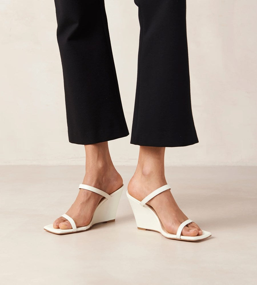 Wedge, but with the effortless ease of a mule. The Paixao sandal is a perfect blend of minimalist design and modern trends, offering a slip-on style that sits atop a chic wedge heel. Crafted from smooth cream leather, it exudes understated elegance while providing a contemporary edge. The sandal features a sleek, squared toe complemented by delicate, barely-there straps that enhance its refined silhouette. With its open-back design, sliding into these sandals feels as easy as it looks, literally! Ideal for both casual and more elevated outfits, the Paixao is the epitome of stylish versatility.