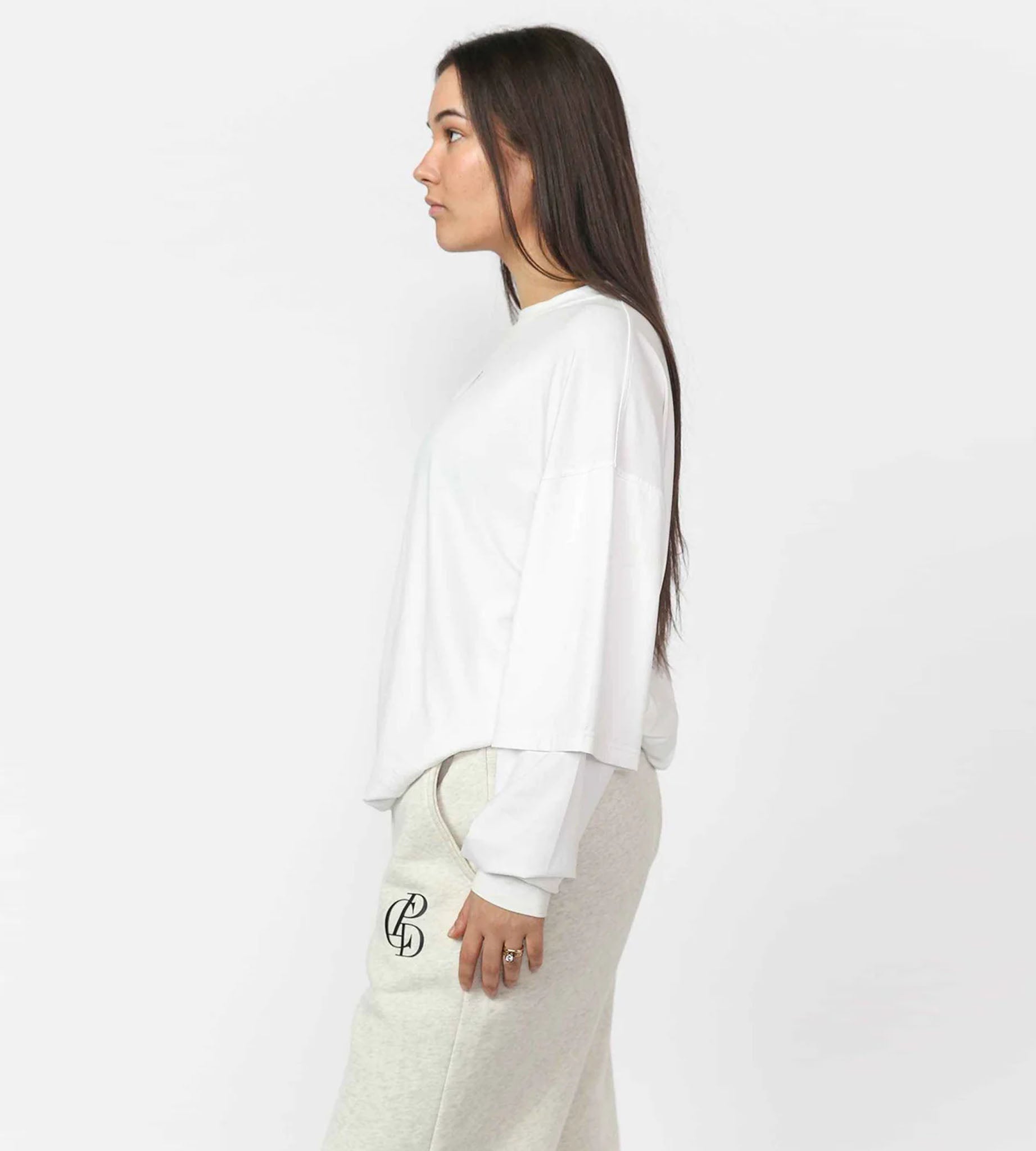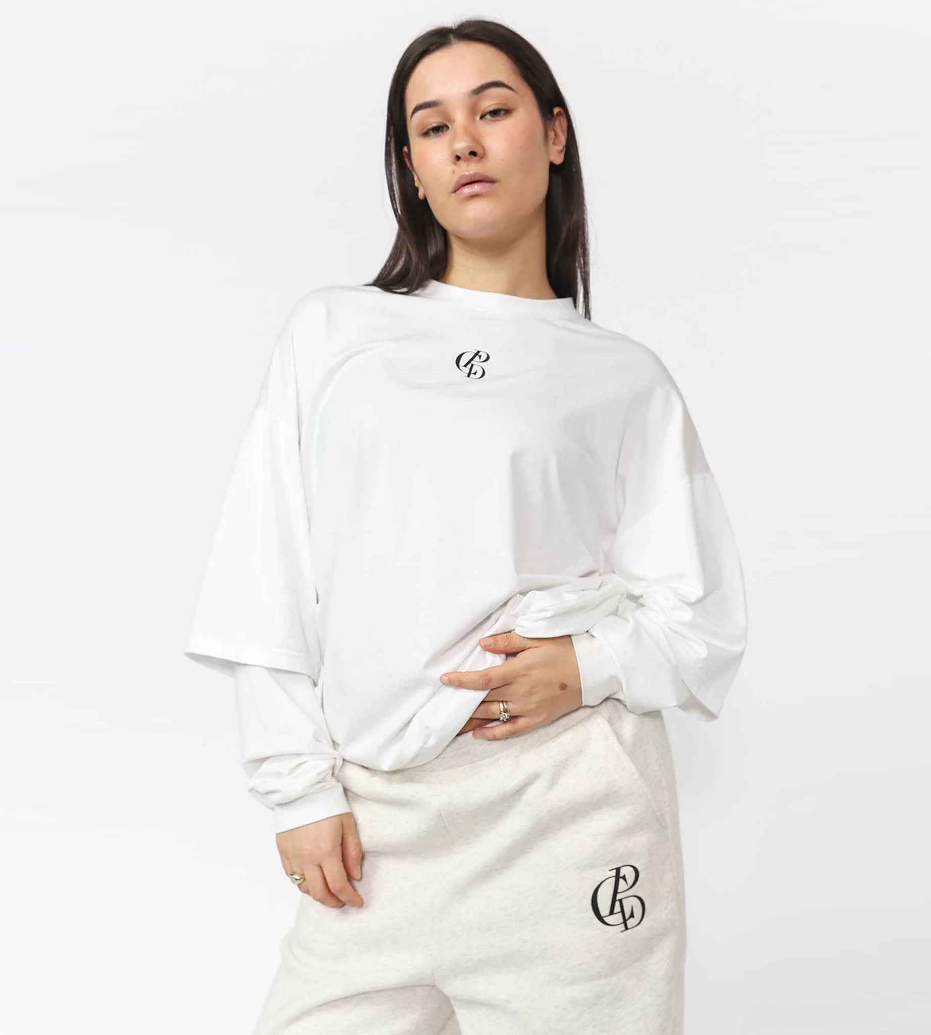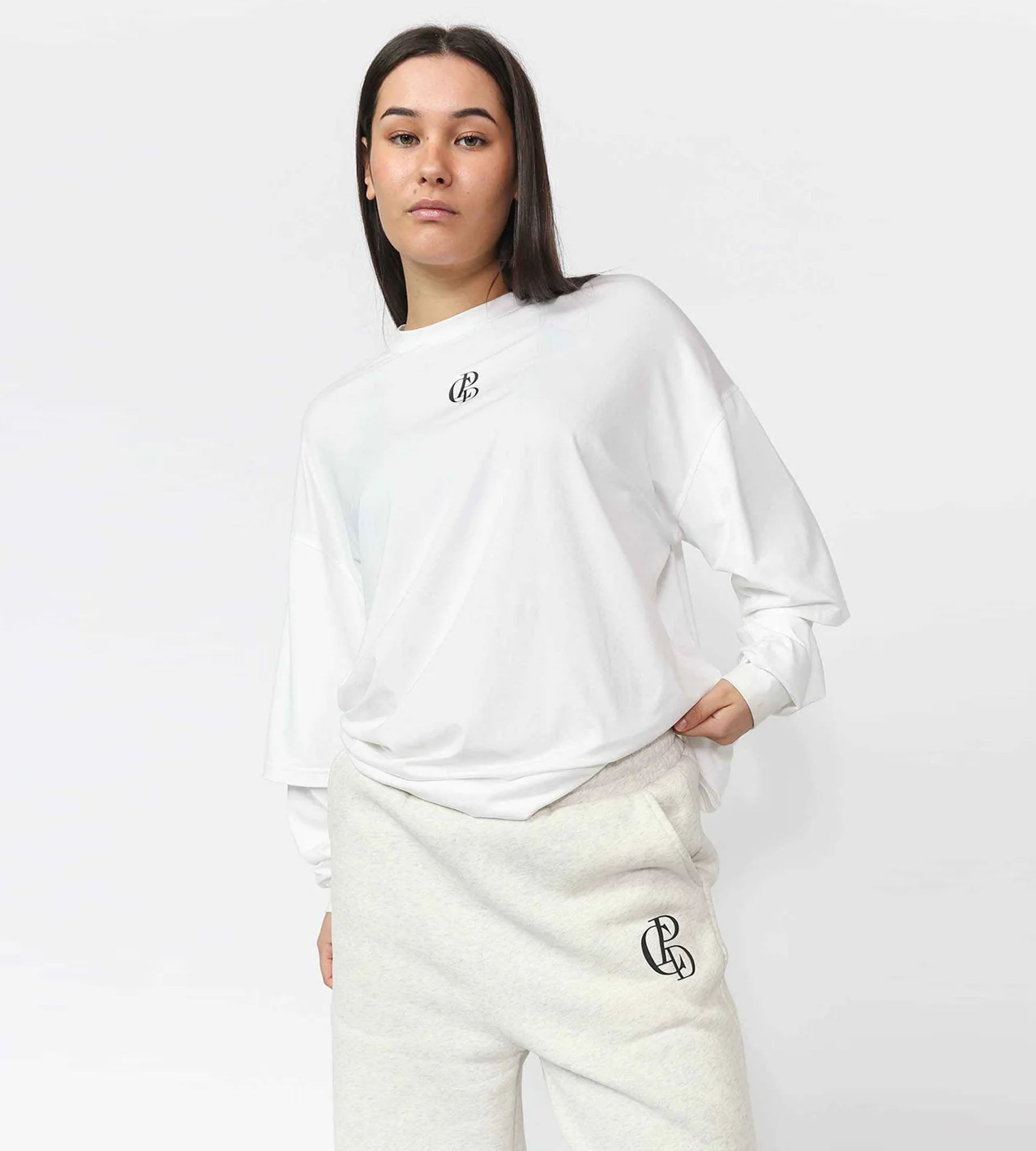 The CPD Double Layer LS Tee is made with super soft cotton, modal, and elastane blend. This unisex style is finished with double layer sleeve detailing and a printed contrast CPD emblem.