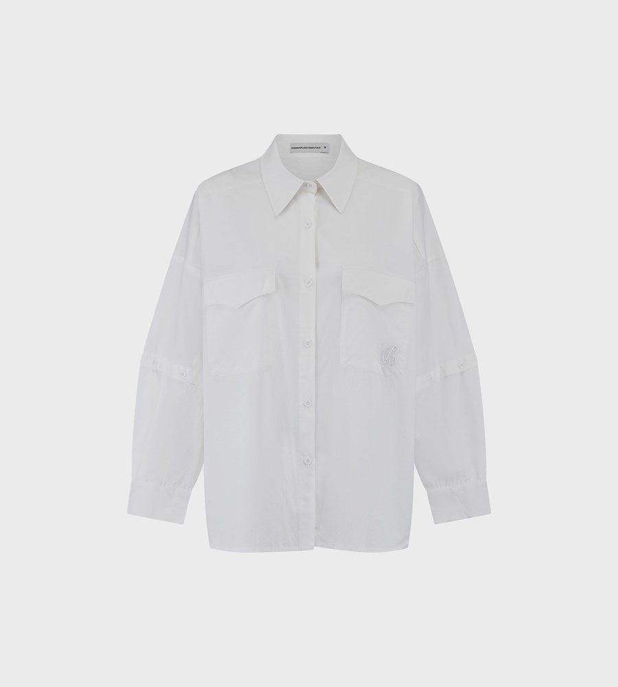 This mid-weight shirt features double front pockets and button-off sleeves, offering ultimate versatility for summer wear. Its adaptable design allows for easy styling, making it perfect for various occasions. Pair it with the Terry Ruched Skirt to create a relaxed yet polished summer lounge look that effortlessly combines comfort and style.