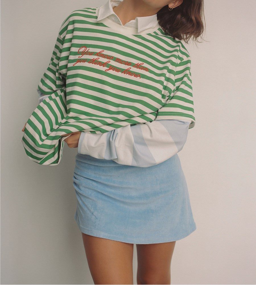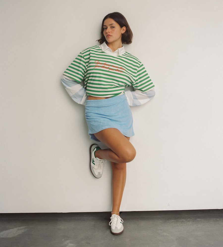This easy pull-on style mini is crafted from soft terry toweling, making it perfect for casual wear. It features a relaxed elasticated waist for comfort and a flattering fit. Subtle ruched side detailing adds a touch of style, making this mini a versatile addition to your wardrobe.