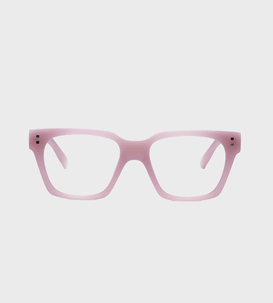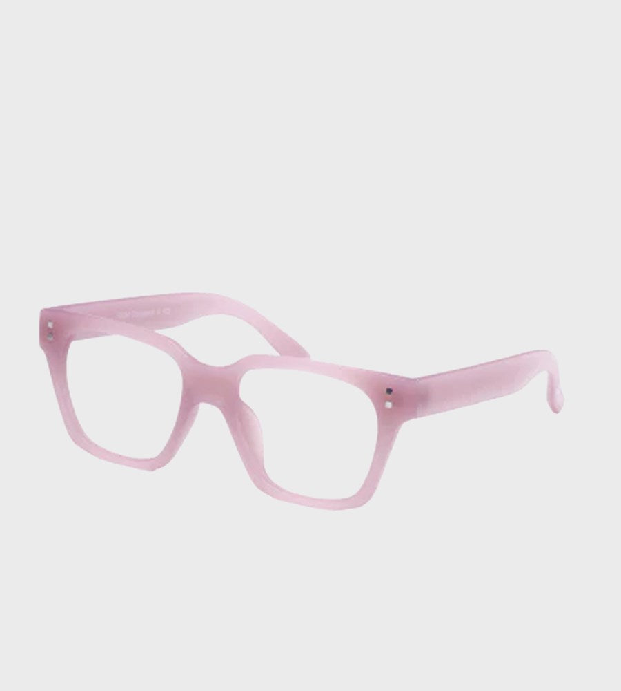 Blush, an earthy soft pink with a matt finish A statement shape with bigger and bolder frames. Unisex, unique design, high-quality and comfortable with; magnifying lenses, matt feel, flexible hinges, and available in fashion forward colours.