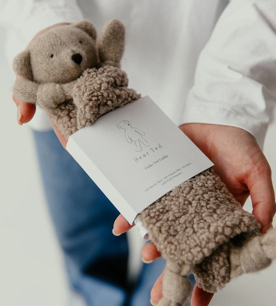 The sweetest cuddly companion designed to create comfort and can act as a sleep aid for your little one. Made with New Zealand Peino wool, making Ted the cosiest cuddly to snuggle up to.