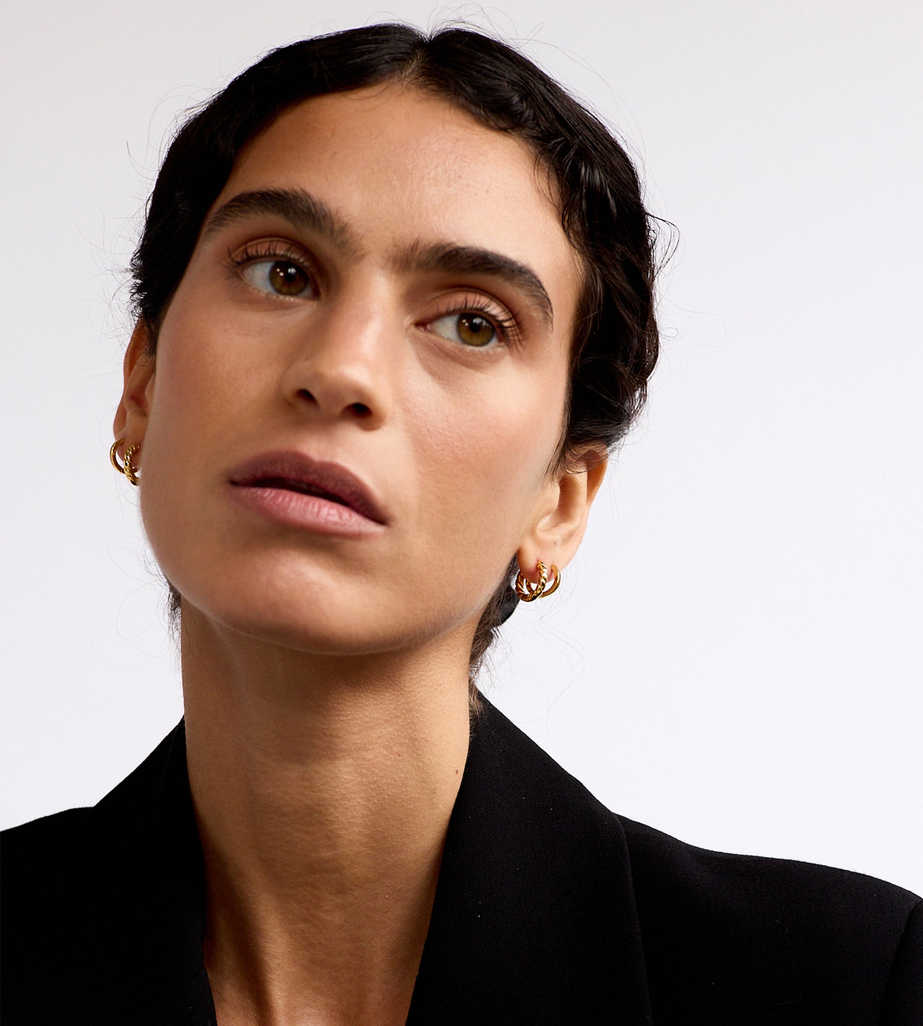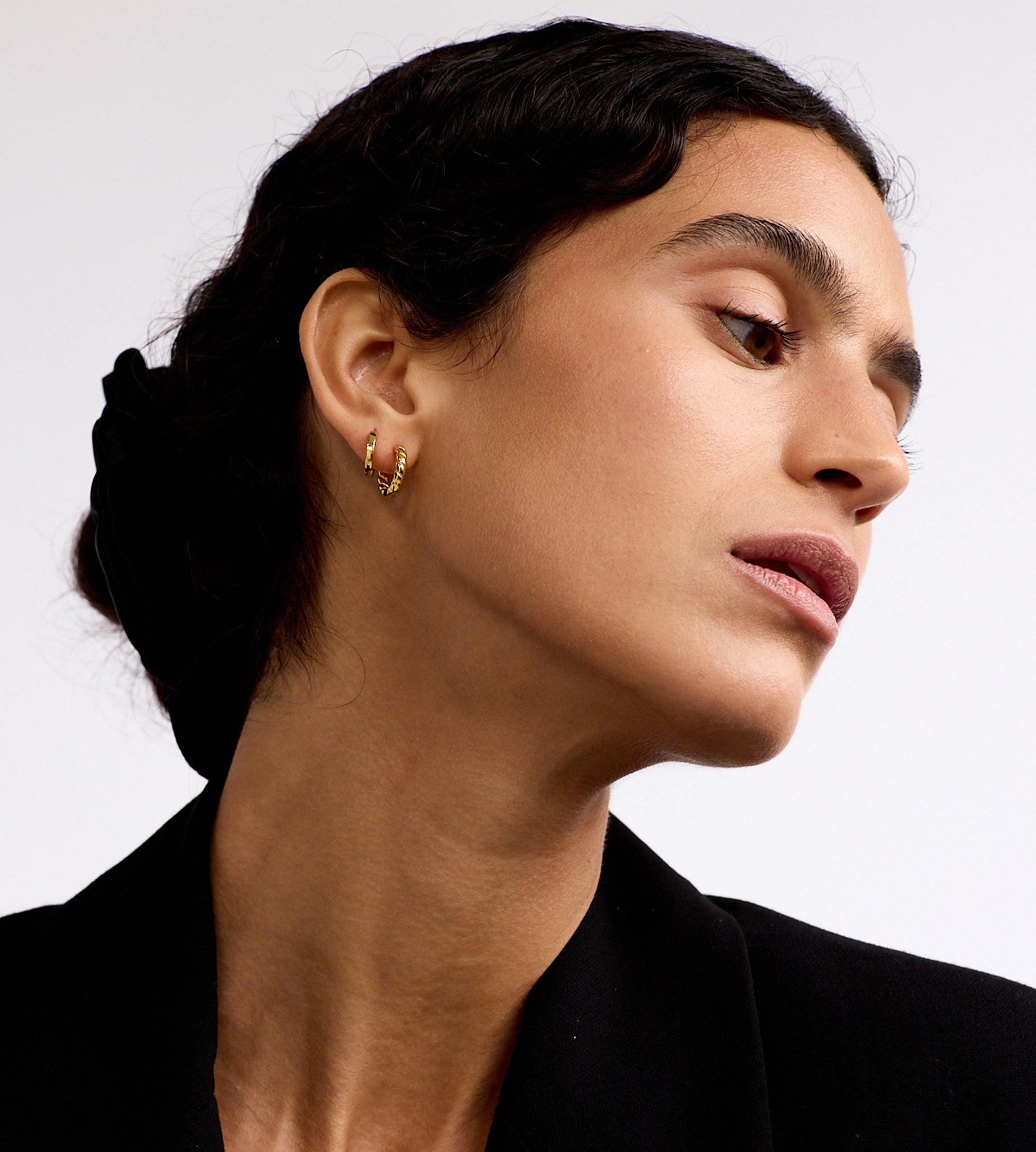 The La Dailie mini hoops are designed to sit closer to the ear lobe, we love wearing them on a second earring hole, but they also look super chic as an effortless and understated hoop to wear on your first hole.