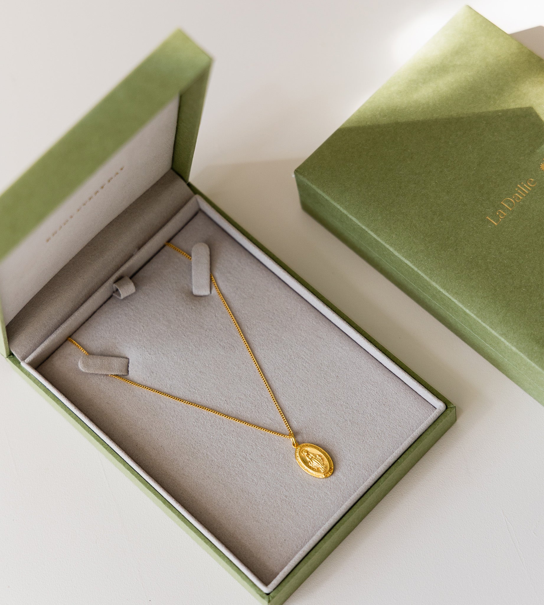 The Everyday Saint Mary Necklace is the perfect for necklace for everyday and is designed to be worn on its own or to layer with other necklaces. Saint Mary, revered for her compassion and strength, serves as a powerful symbol of faith and protection. This pendant, featuring her serene and dignified image, is gracefully displayed on a gold chain that merges modern simplicity with timeless elegance. Its versatile design ensures it pairs seamlessly with any outfit, making it a perfect choice for daily wear. The necklace's classic appeal, combined with contemporary refinement, offers both profound meaning and enduring style. Elevate your everyday look with a piece that embodies both spiritual significance and modern design.