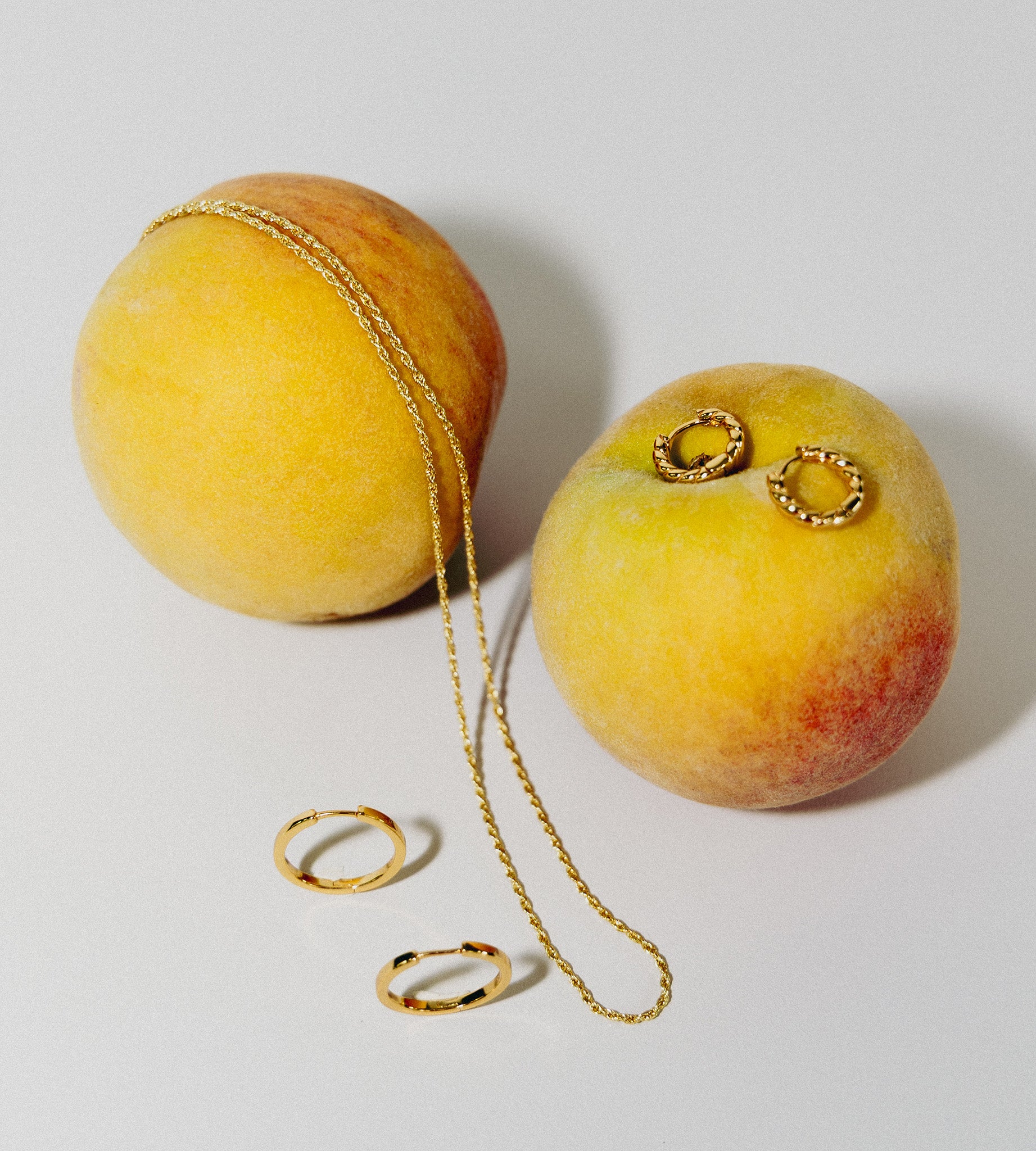 A super thick layer of pure solid 14K gold over recycled 925 sterling silver.