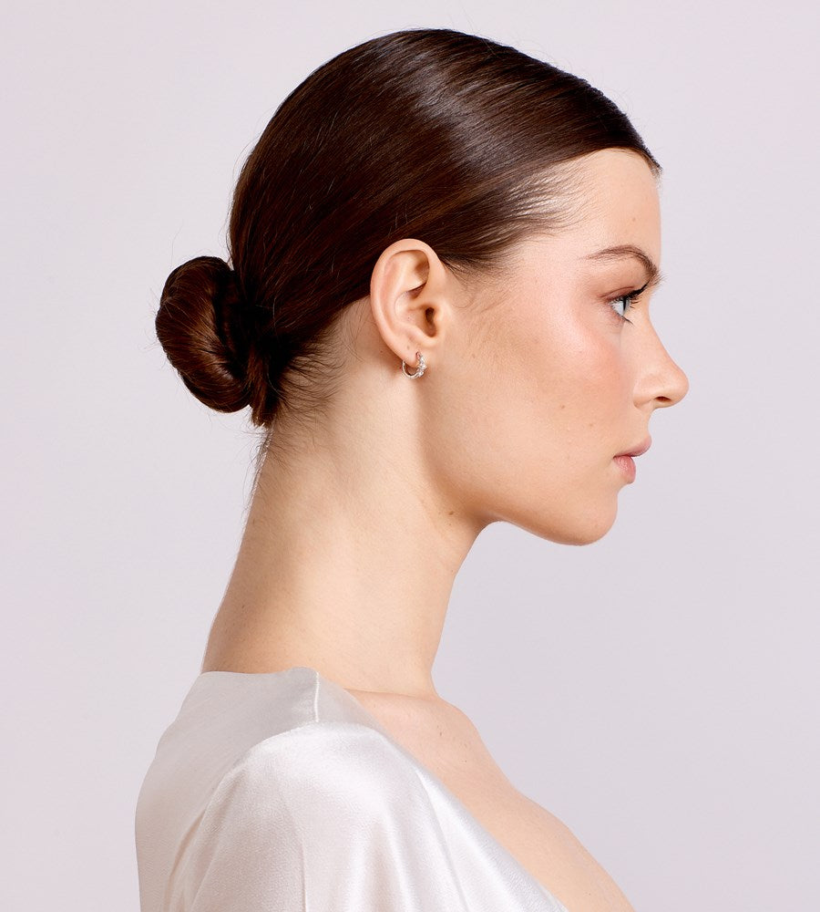 La Dailie | The Ada Pearl and Crystal Mini Hoops | Silver