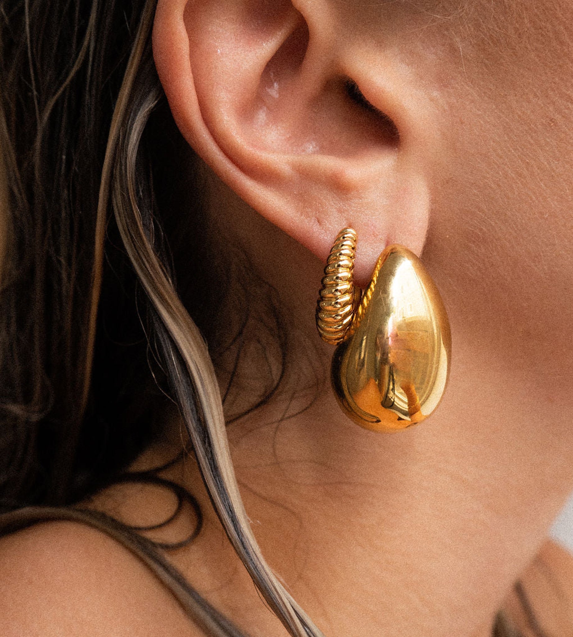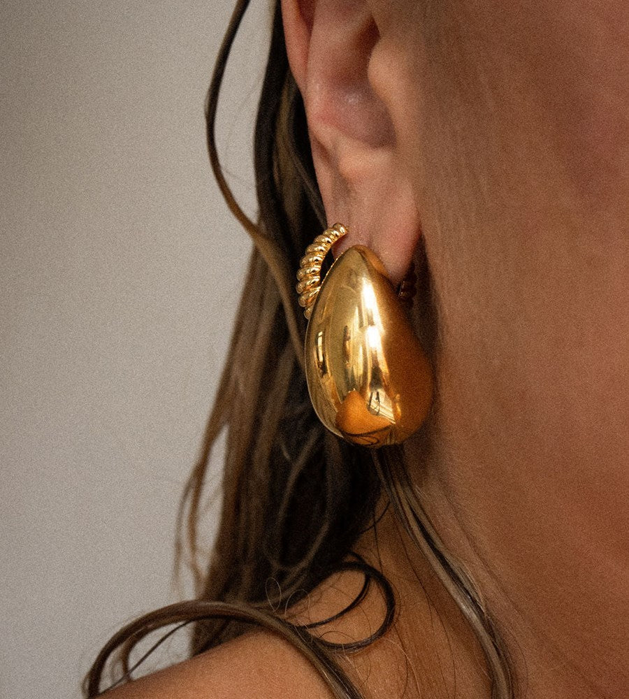 Introducing the Gia Hoops, your new favourite statement earrings. These chunky hollow push back earrings have been designed to elevate your style effortlessly. Sold as a pair for pierced ears, each earring stands around 30mm tall, making a bold yet elegant statement. Crafted from Brass and plated in radiant Gold, these earrings boast a substantial weight of 5 grams per stud. Engineered with hypo-allergenic surgical steel posts, these earrings ensure comfort for sensitive ears. Plus, they're 100% nickel-free and cadmium-free, prioritising your skin's health. Backed by a 1-year warranty and elegantly packaged in Luv Aj branded gift boxes, these earrings are the perfect choice to add a touch of glamour to any outfit.
