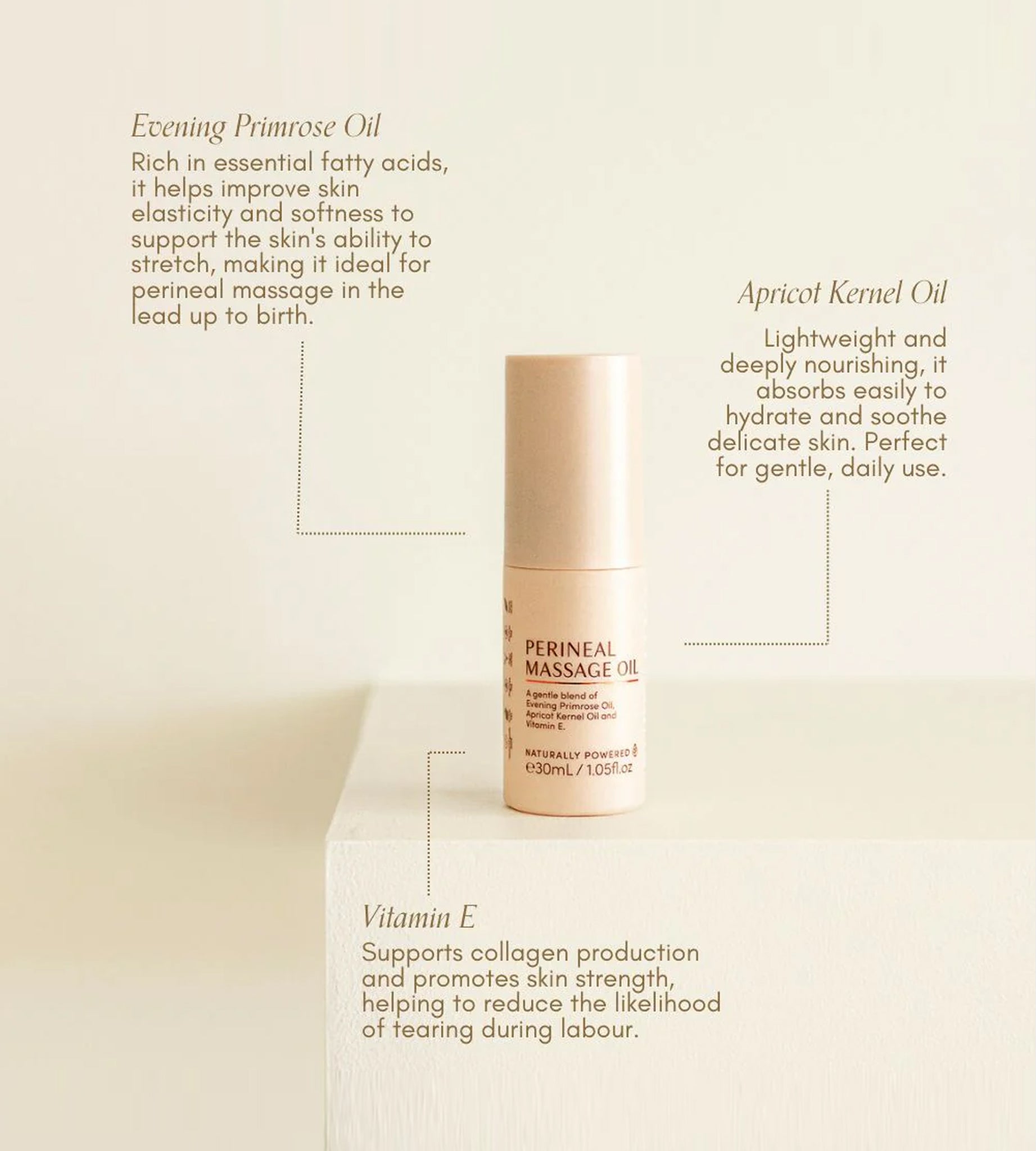Support your body’s natural strength with our gentle, yet powerful Perineal Massage Oil. Expertly blended with Evening Primrose Oil, Apricot Kernel Oil, Calendula, and Vitamin E, this nourishing formula promotes skin elasticity and resilience, helping to prepare delicate skin for birth and reduce the risk of tearing.