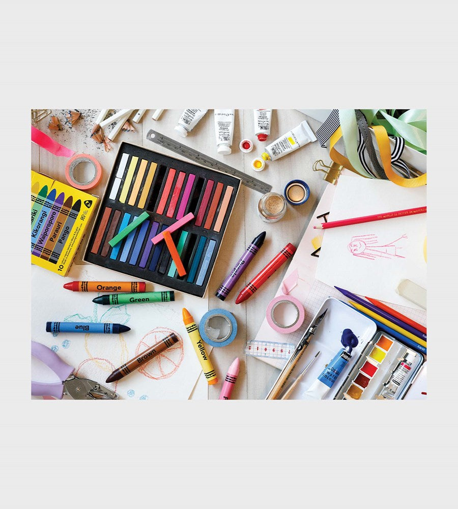 Crafts Table is a colourful and realistic display of children's creativeness running wild. Crayons, pastels, paint and ribbon build this photograph into the gleeful scene we all can recognise, whether in recent times or nostalgic.